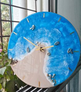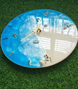 Handcrafted Ocean Epoxy Resin Wall Clock – Coastal Elegance for Your Home