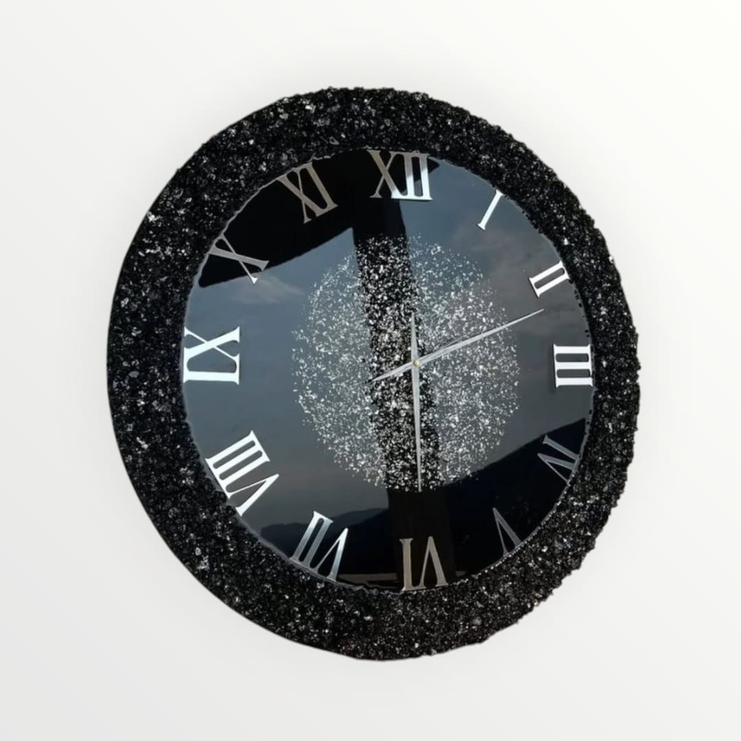 The glossy resin surface creates a stunning mirror-like depth, while the dark marble-inspired patterns add richness and drama. Every clock is individually handcrafted, making each piece truly unique — no two designs are ever the same.
